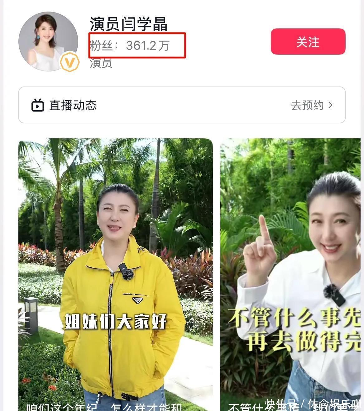 可见明星的来钱速度之快,片酬定价之高,是远胜于普通人的。再说闫学晶本人,都不说她之前的作品片酬有多少,就说如今她顺应市场做的自媒体,粉丝目前已万了,除了接广告,平时的直播也不少挣钱呢。